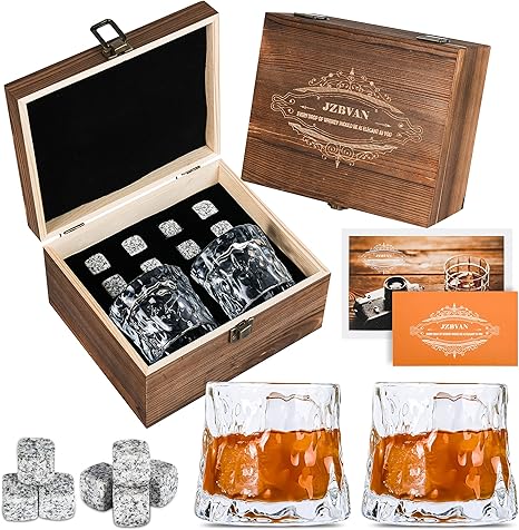 Amazon Com Whiskey Gifts For Men Whiskey Stones Gift Set 10 Oz Whiskey Glasses Set Of 2 Man Crates Scotch Bourbon Gifts For Him Husband Dad Birthday Anniversary Father S Day Home Kitchen